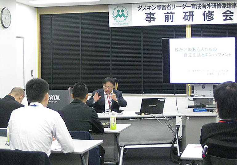 第38期(2018年度)海外研修派遣生に選ばれた、個人研修生4名、ミドルグループ研修生1グループ4名の事前研修会を、3月23・24日の2日間ダスキン本社ビルの会議室で行いました。 事前研修会1日目はダスキンと愛の輪運動について、ダスキンの経営理念など、この研修の成り立ちを知って頂き、2日目には実行委員による障がい者福祉の歴史と現状、障がいのある人たちの自立生活とエンパワメントについて学びました。 研修生は担当アドバイザー(実行委員)と個別懇談をし、研修の「ビジョン」・「ミッション」・「バリュー」の確認など海外研修に向けて準備が始まりました。 第38期研修派遣生への応援をよろしくお願いいたします。