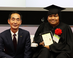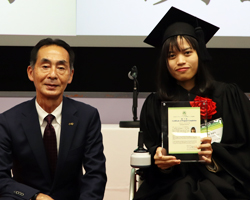 アジア研修生5名は、緊張しながらも研修で覚えた日本語・日本手話を使い、研修での気付きとこれからの抱負を発表しました。 修了式では、アカデミックガウンと帽子に身を包んだ姿を全国の関係者や母国のご親族にご覧いただきました。 研修生のぞれぞれの国の言葉でお祝いを述べて下さった財団理事の﨑野圭子さま、コロナ禍でなければ会場で激励の言葉をいただき応援くださった皆さま、心よりお礼申し上げます。 これからも応援をよろしくお願いいたします♪