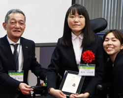 派遣実行委員や第44期研修派遣生、ダスキンファミリーの方々が参加しました。 第40期個人研修生3名、第42期個人研修生1名、それぞれが研修で訪れた国で学んだこと、体験したことを発表しました。当日参加できなかったジュニアグループ研修生はビデオ映像で成果発表をしました。 成果を発表した研修生に、ダスキン愛の輪基金大久保裕行理事長より修了証の授与が行われ晴れやかな笑顔に満ちていました。